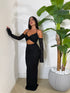abito lungo ricamato con incrocio sul seno ed apertura sull'addome, maniche ad imbuto traforate
