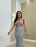 abito a tubino con incrocio sull'addome ed arricciatura sul seno