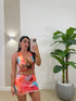 abito mini fantasia marina con dettaglio farfalla ed addome scoperto