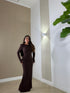 abito lungo accollato a sirena scollato incrociato sul retro
