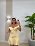 abito scollo a barca con gonna a pieghette con zip sul retro