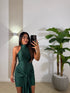 abito corto a tubino collo alto con fusciacca in vita zip sul retro