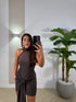 abito corto a tubino collo alto con fusciacca in vita zip sul retro