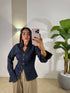 camicia in denim con bottoni oro taglio avvitato margi indossa S