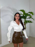 Gonna in vernice Marrone con zip laterale, no elastica, foderata all'interno e non comprende di pantaloncino