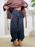 jeans ballon lavaggio 0 con laccetto in vita e tasca con toppa quadroni in contrasto margi indossa S