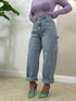 jeans ballon chiaro con applicazione brillantini e porta martello