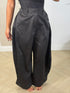 pantalone in tela cerata modello ballon lucido con pences laterali laccetti alle caviglie