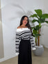 maglioncino a righe scollo a barca con bretelle a catenina oro