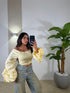 Top con arriccio a barca maniche a sbuffo molto elastico e veste fino a duna taglia 44