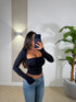 maglia manica lunga elasticizzata con scollo quadrato