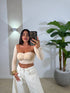 top a fascia con drappeggio centrale + coprispalle manica lunga