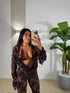 coordinato velato con applicazione paillettes 3 pezzi pantalone a zampa con culotte maglia con scollo morbido e top a triangolino