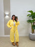 tuta completa garzata primaverile composta da felpa crop aperta con bottoni e pantalone palazzo con laccio in vita