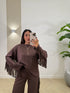 tuta completa composta da felpa girocollo e pantalone palazzo entrambi con frange sul retro