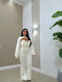 tuta completa 3 pezzi composta da pantalone a zampa top a fascia con zip e coprispalle