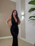 abito lungo con dettagli paiettati con schiena scoperta e scollo morbido sul seno