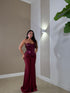 abito lungo elegante con parte superiore a corpetto paiettata gonna lunga e fascia con nodo in vita
