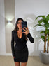 abito corto manica lunga con corpetto ricamato e bottoncini