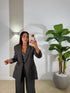 tailleur elegante con pantalone palazzo e giacca doppio petto